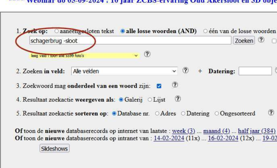 zoekt in het dorp Schagerbrug naar alle records waarin het woord sloot