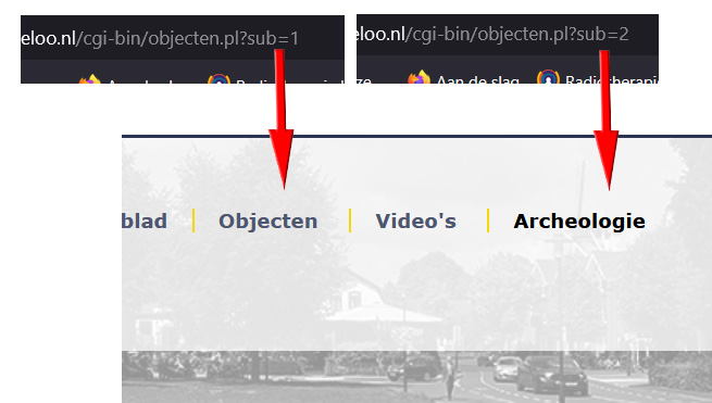 De aanroep (URL) in dit geval krijgt als parameter sub=[#] (# is het gewenste nummer)