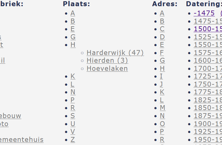 Door nog een keer op de letter te klikken wordt de uitgeklapte lijst gesloten.
