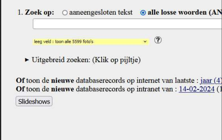 De uitgebreide zoekopties op de homepage van de beeldbank kan via een pijltje/link of button worden opgeroepen.