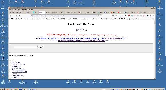 Op de afbeelding de homepage van een ZCBS-beeldbank op een PC met hoge resolutie.