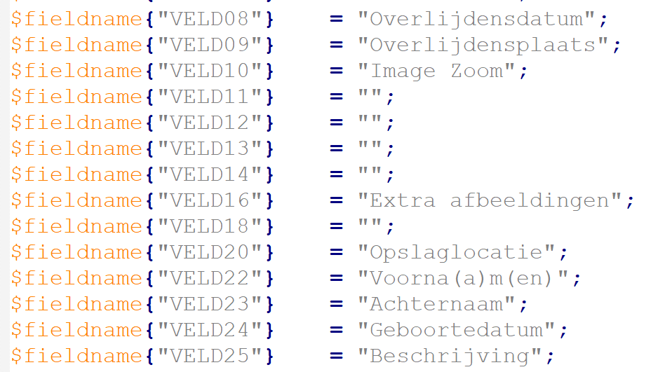 Aanpassingen van de veldnamen